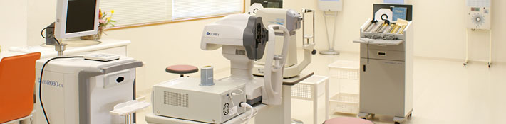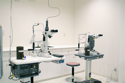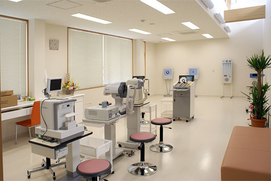 受付、待合室、視力検査室、暗室、処置室、診察室1、診察室2、手術室、術後回復室があります。